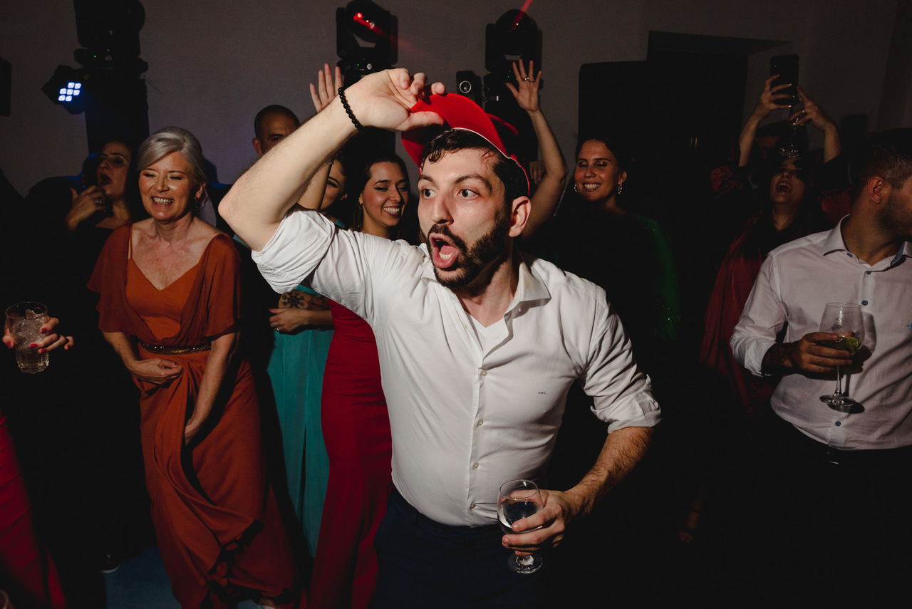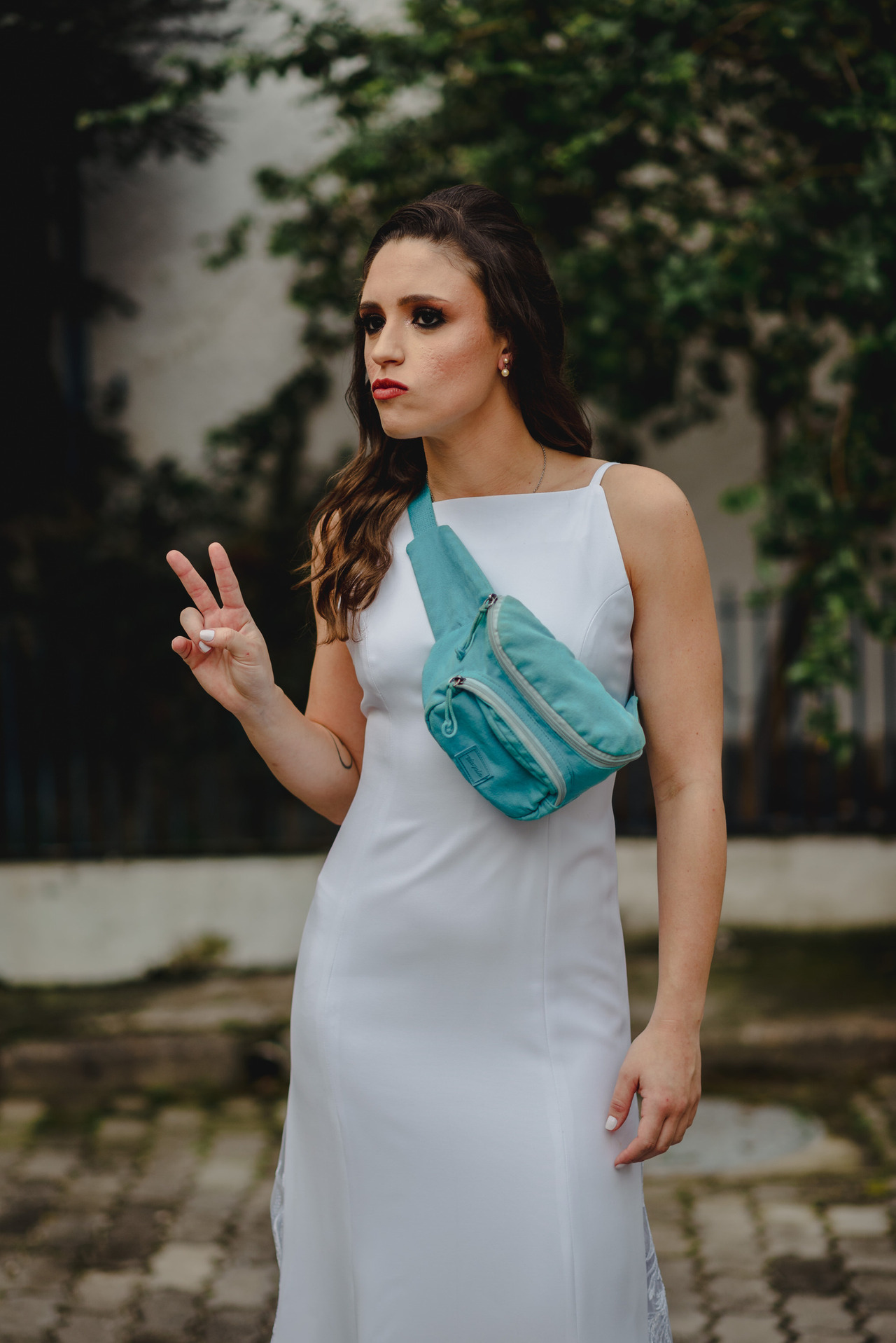 Marra de rapper, 8 mile na cabeça, boné pra trás, desafio com direito a microfone no chão. Noiva com pochete, sua maior escudeira, sua bolsa segura.